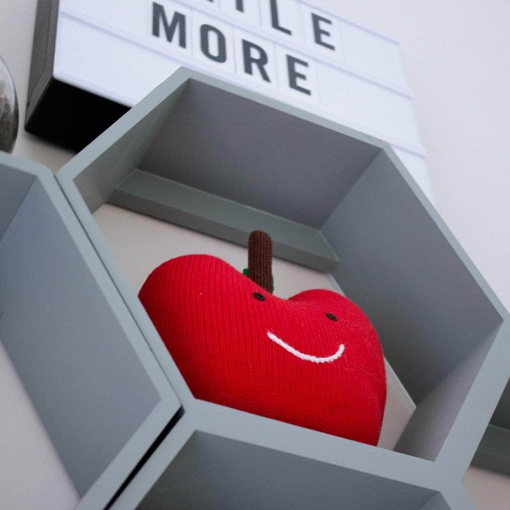 The big apple just got brighter with our 7” organic cotton apple plush. Featuring a smiling face and “NYC” stitched on the other side, it’s the perfect gift or nursery decor.